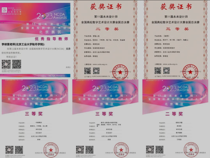 数字媒体艺术专业全国高校数字艺术设计大赛(NCDA)获奖