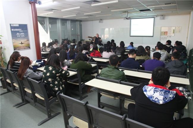 参观当天,新东方教学管理部副主任汪珺老师和总裁办公室魏巍老师对前去参观的56名师生进行了热情的接待,并带领大家参观了各个行政和职能部门。这让同学们切实体会到了新东方严谨的工作态度、积极的工作氛围以及务实的职业状态。随后,同学们步行前往海龙校区聆听讲座。主讲人Matthew Clark老师从事英语教育十余年,几乎走遍了中国所有分布着新东方教学点的省份,有着非常丰富的教学经验。他用幽默的语言,诙谐的肢体动作和表情,向大家介绍了新东方教育科技集团以及他本人在新东方的教学经历,并向大家介绍了当今的外语教学发展趋势。同学们都觉得这次讲座让他们深受启发,让大家对教育行业和教师这个职业充满了憧憬和期待。