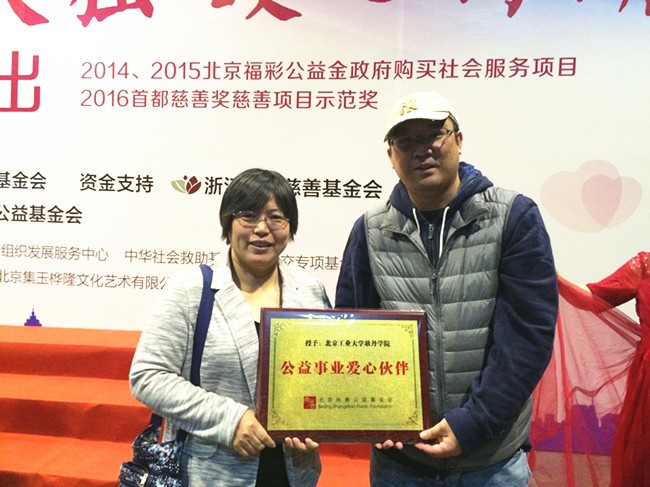 10月24日下午,耿丹学院人文社会科学系副主任郑莹出席了北京尚善公益基金会在繁星戏剧村主办的“关爱失独,暖心行动”汇报演出。北京尚善公益基金会为表达对参与伙伴的感谢、感恩之意,授予耿丹学院“公益事业爱心伙伴”。北京尚善公益基金会是人文社会科学系实习基地,自2013年双方以公益服务项目开展合作,学生参与其“关爱失独 暖心行动”项目中实习,在项目合作中师生走访了北京75个社区的心灵家园,帮助基金会把其捐赠的图书送到社区,并编码、上架,建立社区书架;同时在这些社区开展社会调查,了解社区和失独老人的现状和需求,既为后继服务铺垫了基础,也结合专业关注社会问题和社区治理。学生在实习中的表现得到了尚善公益基金会的高度评价,并对我院的教育教学理念高度赞同,一直保持密切合作,并在近期提出深入合作的意愿。耿丹学院和尚善公益基金会在合作中,同心同行同成长,传递爱心和温暖,在公益事业中结为爱心伙伴。