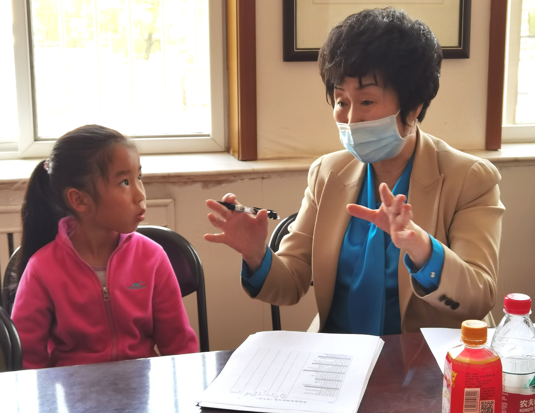 王雪晶:我主要负责3-6年级的学生访谈,在访谈之前需要做足准备工作。老师们很早之前就开始进行规划,之后对我们进行培训,从访谈的目的开始,给我们逐一进行讲解,运用了我们之前专业课上所学的一些基本知识。虽然在访谈前夕我们做了很多的准备,但是到了正式访谈的时候,还是非常紧张,第一次独自面对孩子进行访谈,脑海里过了很多遍,刚开始第一句话要跟他们说什么啊?我该怎么跟他们进行解释?该用什么语气去跟他们说话?…到了第一个孩子坐在我对面的时候,我真正意识到访谈开始了,他非常乖的跟我打招呼,我跟他说规则的时候,他非常耐心的听我跟他讲,而且他的理解能力非常强,我读的每道题都能很快的进行反应,做完第一个孩子之后,慢慢的就非常熟练了,到之后的孩子就开始慢慢熟练起来,做的很快,在整个访谈下来,我深刻理解了之前在实验心理学课上讲的理论,跟他们近距离接触能感觉到男女生、低年级和高年级之间显著的差别。