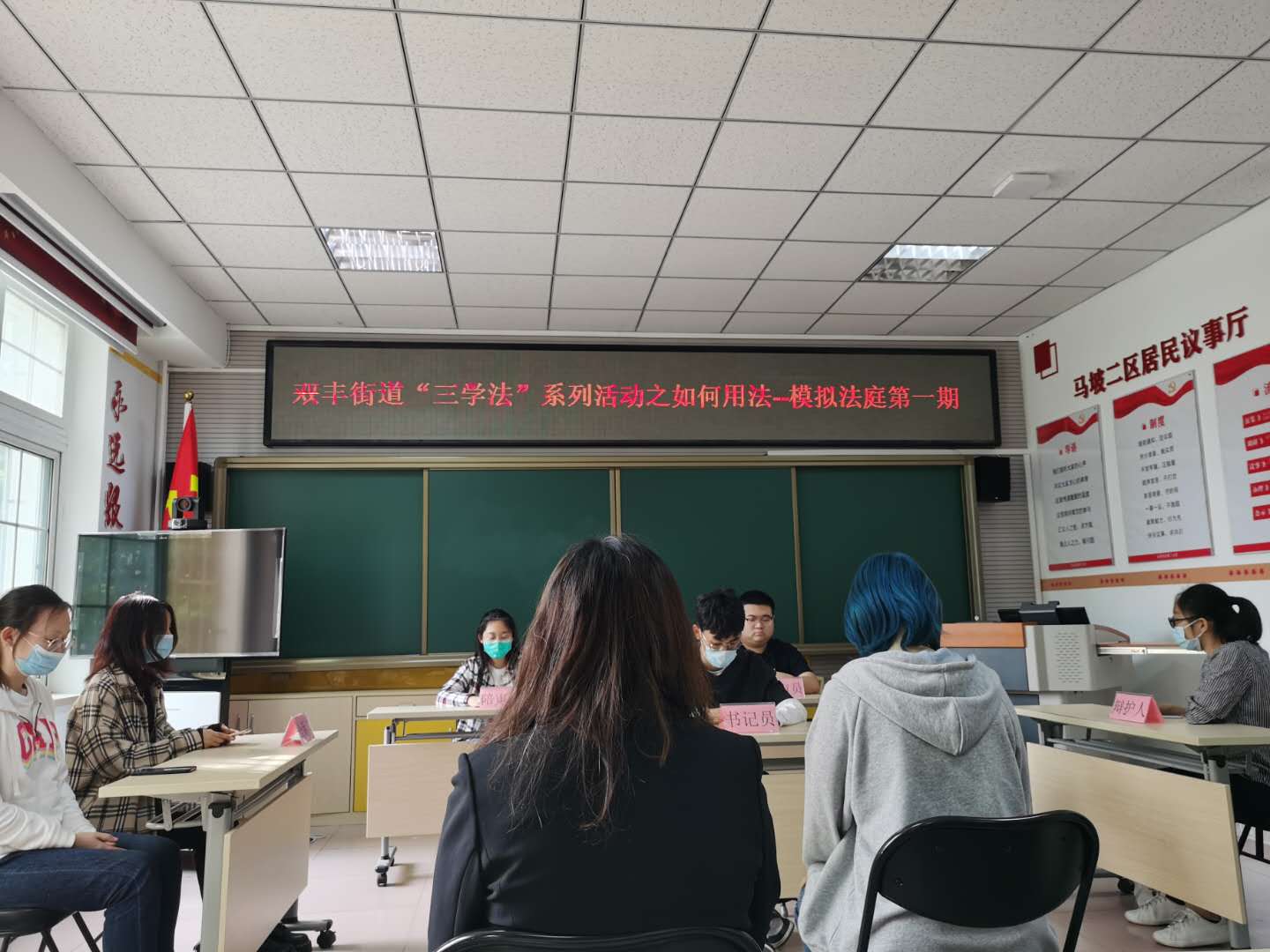 2020年10月14日耿丹学院人文学院社会工作专业2019级学生在顺义区双丰街道新马家园社区参加了由双丰街道、顺义区丰芑社会工作事务所组织的“模拟法庭”进社区的活动。街道、社区的工作人员及社区居民观看、参与到这次“模拟法庭”的活动中。