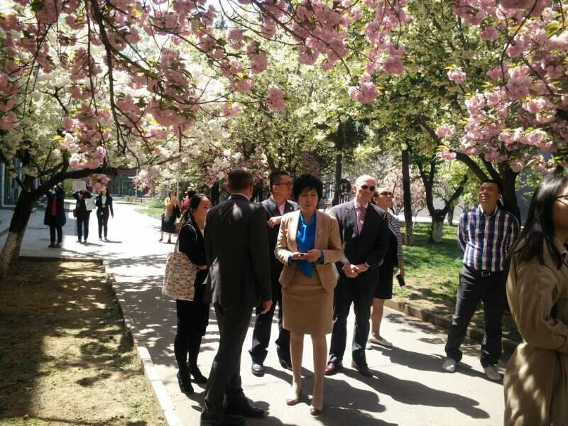 交流会后,外宾们在李洁主任的陪同下参观了校园以及国际交流中心。