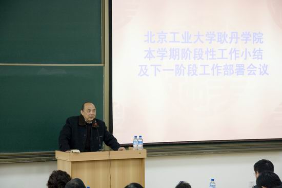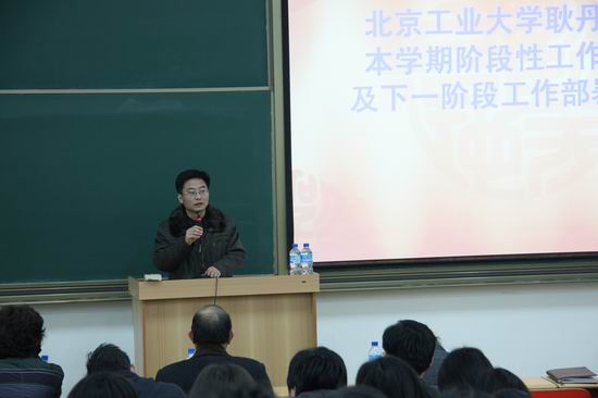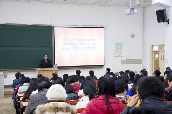 首先,常务副院长吴国蔚对全院工作进行小结并布置了下一阶段的工作。吴院长指出,本学期上一阶段学院各项工作取得了一定的成绩:在有效完成教学任务的基础上圆满完成国庆游行和花博会任务;增添了语音教室、多媒体教室,实验室建设和地下室改造取得了很大进展;教职工队伍进一步壮大;抗击甲型流感卓有成效;成为首批中国(北京)服务外包人才培训机构,为学生的就业和实习提供了良好的平台。下一阶段的重点工作是继续抓好教风学风建设、实践教学、毕业实习(设计)、毕业生就业工作;完善学院发展规划与导论的编写工作;做好学院五周年校庆的筹备工作。