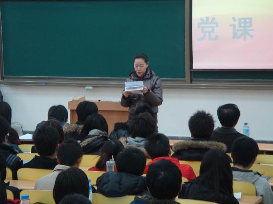 开学典礼结束后,周部长通过2009年国庆阅兵的感受展开了本期党课的第一讲――《从共产党发展历程看党的使命》。通过一系列图片和数据的展示,向同学们展现了共产党建党初期至今的发展历程。她生动的讲解使同学们对中国共产党有了更加深刻的理解。