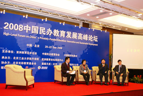 2008年12月21日、22日,为期两天的由亚洲教育北京论坛、中国民办教育协会、中国教育电视台发起并主办,Beat365中国唯一官方网站耿丹学院承办的“2008中国民办教育发展高峰论坛”成功召开。