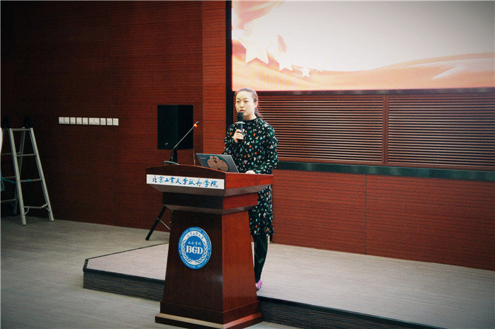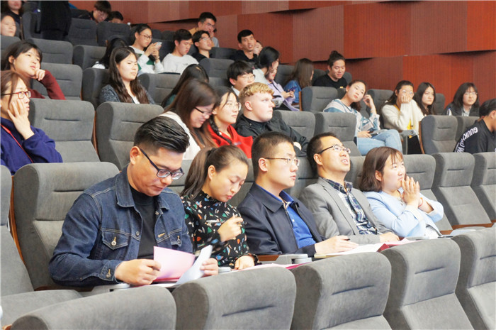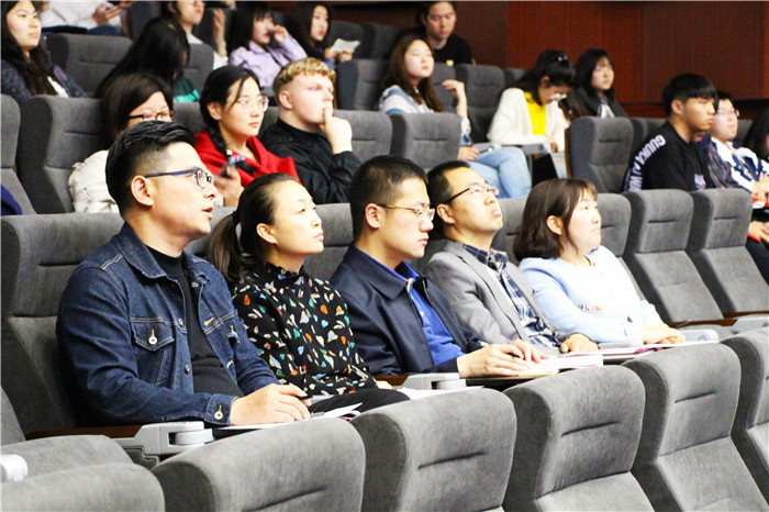 所有选手表演结束之后,师蓓老师对参赛选手的表现从专业角度进行了点评,她讲到配音是用声音再现原剧中人物的形象,以声音作为表演手段,则需要对原片的故事、艺术样式、风格、时代背景等充分分析。同学们能用心体会人物,在话语样式、气息状态和吐字力度等方面有不同的呈现值得表扬。同时她也指出希望同学们的情绪能更加饱满,掌控配音的节奏等等,选手们都受益匪浅。最后,国际商学院吕院长讲话,他指出此次比赛是有意义、有价值的一次活动。同时提出四点希望。一是希望全体同学志存高远,做坚定理想信念的新时代大学生。二是希望同学们增强历史使命感,做奋发有为的青年。三是希望党支部精心组织,做与时俱进的时代先锋。四是希望同学们做一个有国际视野和文化自信的社会主义建设者和接班人。