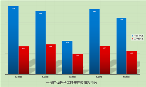 5月11日-5月15日期间,共有在线教学课程260门、1383门次;共有同学43278人次上课;共有198位教师进行了在线教学。学校积极落实了在线教学第十二周对同学“全覆盖”的要求,基本保证同学每天在线学习。