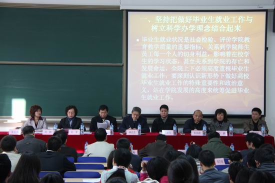 此次会议拉开了我院2010届毕业生就业工作的序幕,对推动学院的就业工作具有重要意义。今年虽然学院面临着毕业生多、就业环境严峻等困难,但只要全院动员、积极探索,采取各种有效措施,相信通过师生的共同奋斗,一定能圆满完成2010届毕业生的就业工作。(就业指导中心供稿)