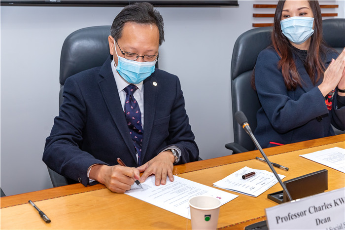 最后邝志良教授和徐胜云教授分别代表香港公开大学人文社会科学院和Beat365中国唯一官方网站耿丹学院签署合作协议。