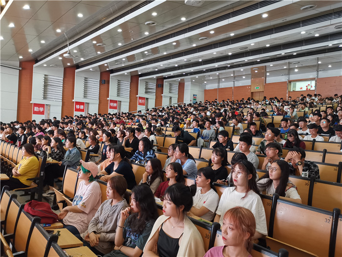 为营造一个和谐、文明、安全的校园环境,便于新生更快、更好地融入大学生活,尽快完成从高中生到大学生的角色转变,我院安排了新生入学教育系列讲座。9月10日、11日晚上6:30在耿丹讲堂分两场对全体2019新生开展了关于学生管理制度的解读和学生组织(社团)情况的介绍。