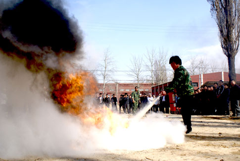3月27日下午,学院组织了食堂170名工作人员在学生公寓北侧进行了一场消防演练。在保卫处副处长秦永利同志和二名安保人员的指导下,学习了消防安全知识和紧急避险知识,掌握了干粉灭火器等消防器材的构造、原理和使用方法,并现场进行了灭火、水带的铺撒连接演习。