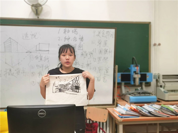 第四天,我们为帆布包作文化方面的处理,文化创意与文案策划。大家对于自己的帆布包的宣传标语展开了热烈的讨论,最终大家都定下了属于自己的宣传语。例如,钟塔的主题为“钟声微径入深花,莘莘学子共繁华”,耿丹烈士雕塑的口号为“耿耿寸心,碧血丹心”,烟囱的标语为“一万个美丽的未来,抵不过一个温暖的现在”……为作品增加相应的宣传口号,为每一个同学的作品增光添彩。