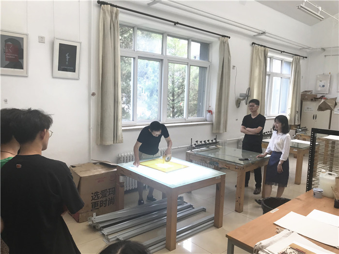 第三天,杨凯老师为同学们一步步的演示从板印到最后帆布包的完成。很快同学们开始了自我帆布包的制作中。一步步体验从印板,洗板,烘干,到之后最重要的一步,上墨印刷,完成作品。不仅考验的是我们的动手能力,也是团队合作的协调度,同学们投入其中,大家从不熟悉到之后可以快速高效的完成专属于自我的帆布包。