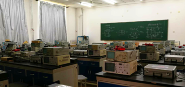 通信原理/高频电子线路实验室占地216平方米,每屋配有25张教学工位,有通信原理实验箱、通信电路实验箱及各类功能模块,有示波器、频率仪、信号源、高频毫伏表、多功能计数器等测试设备。学生们可以做有关通信电路的锁相环实验、BPSK/DBPSK传输实验、小信号调谐放大器实验、高/底电平振幅调制器实验等,还可以用模块电路自己搭建一些小系统通信电路。