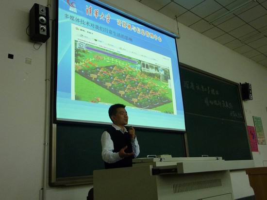 老师用生动的实例说明多媒体领域里各种有趣的应用和常用多媒体效果的制作。他旁征博引、深入浅出的讲述赢得同学们阵阵掌声。在短短的一个半小时的讲座中,大家受益匪浅,感受到了多媒体的无限魅力和这个行业美好的前景。讲座结束后,