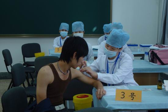 此次疫苗接种,采取自愿的原则,接种疫苗的师生需仔细阅读《甲型H1N1流感疫苗接种知情同意书》并签字。学院卫生所根据接种对象的不同,分三批次进行接种,并制定了《接种不良反应应急处置预案》,在接种现场配备了必要的抢救药品和设施,要求受种者接种疫苗后留观察室30分钟无异常反应方可离开。