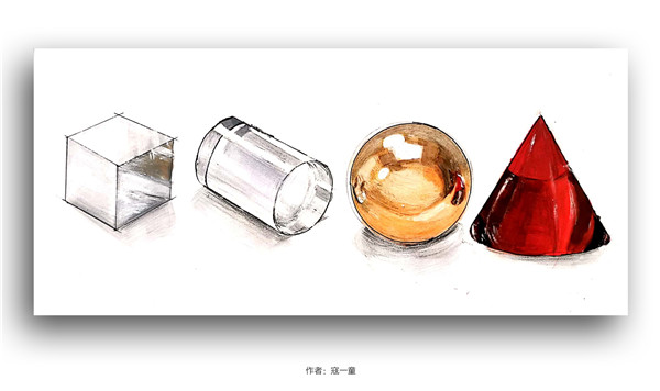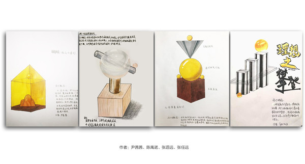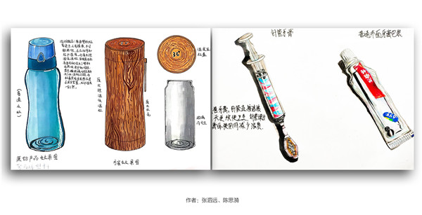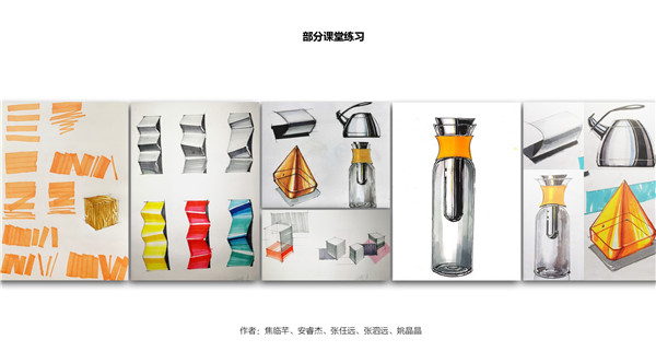 通过课程我了解了材料的种类,学习了不同材料的画法表达。老师带我们一步步到产品设计,构思自己的产品,是非常有趣的过程。设计一个产品不单要考虑材料外型,还要考虑人群需求。有深度的思考,才能设计出好的产品。——刘思敏