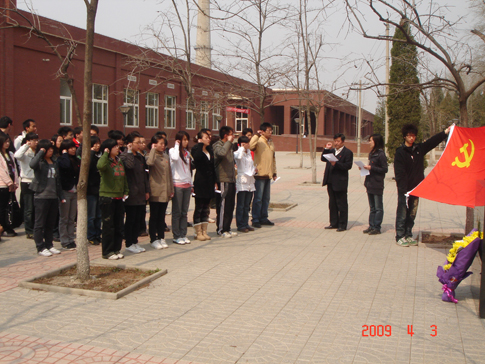 2009年4月3日,学院党总支、团委共同举办了以“缅怀耿丹烈士,坚定理想信念”为主题的清明节纪念活动,张长春书记、郭颖副书记参加了此次活动。