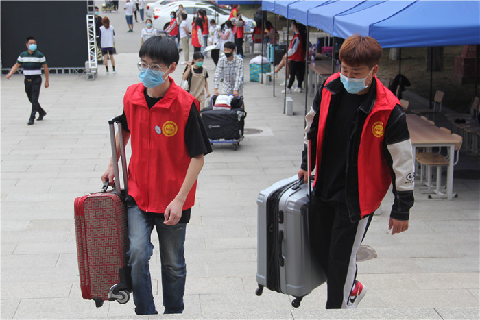 2020年是特殊的一年,在疫情防控进入常态化的形式下,为更好的服务新生和家长,确保迎新工作平安顺利的进行,全校各部门及全体教职员工高度重视,紧密配合,为新生提供便捷的服务。此外,我校还特别招募了在校生志愿者230多名,服务本次迎新活动,略带秋色的美丽校园,随处可见“红马甲”们忙碌的身影。他们的主动热情,让新生及家长深深的感受到了耿丹学院的温暖和关爱。