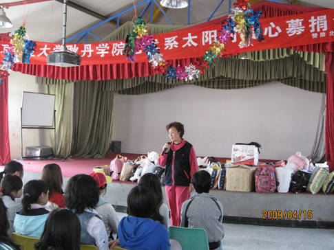 4月16日下午,艺术设计系团委组织同学到太阳村进行慰问和参观,同学们把早已准备好的慰问品交给了孩子们,太阳村张淑琴老师讲述了她创办太阳村的经历。