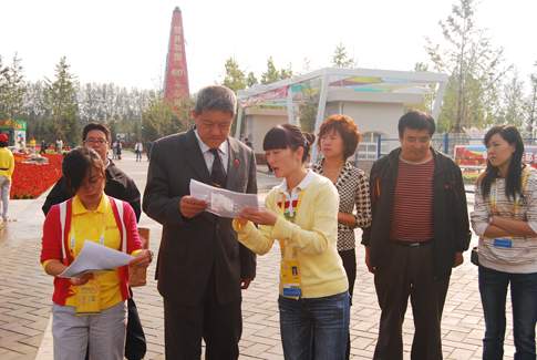 9月25日、26日上午,我院院长林炎志、副院长刘军、党总支副书记郭颖前往中国第七届花卉博览会鲜花港展区,顺义团区委闫岩书记、杨登科副书记、鲜花港运行处赵飞主任等陪同院领导慰问我院150余名学生志愿者。