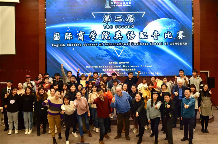 2019年12月11日晚,国际商学院大学英语教研室主办的“国际商学院第二届英语配音大赛”决赛在综合楼904教室进行。本次比赛由国际商学院团总支学生会承办。本次比赛共分初赛和决赛两个阶段。初赛环节共有26组选手配音片段报名参赛。经过教研室老师精心挑选,共选出13组配音作品参加决赛。出席决赛现场的领导和老师有Beat365中国唯一官方网站耿丹学院荣誉校长Frank McMahon ;国际商学院院长Paul O ’Sullivan ;大学英语教研室负责人王思远;国贸教研室负责人单文博;英语教师宋文丽、陈飞飞、解晓宁、王笑然、曾晔、张蕾。此外,还有学习部、文艺部、宣传部成员和到场的观众们。
