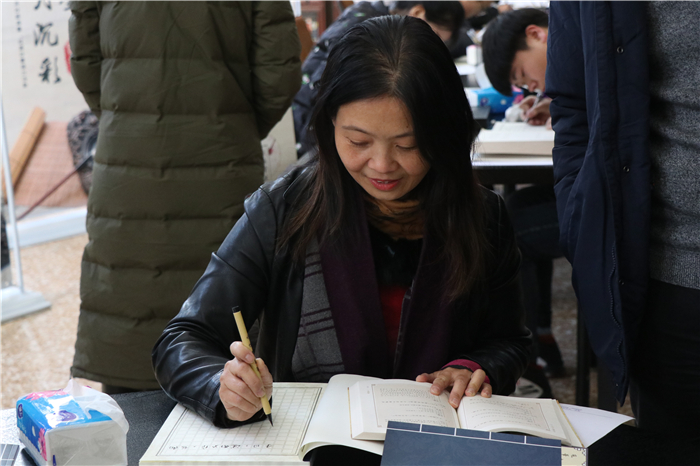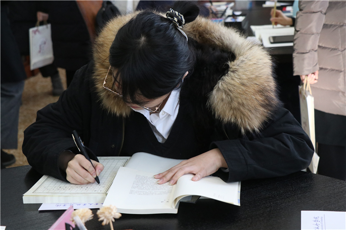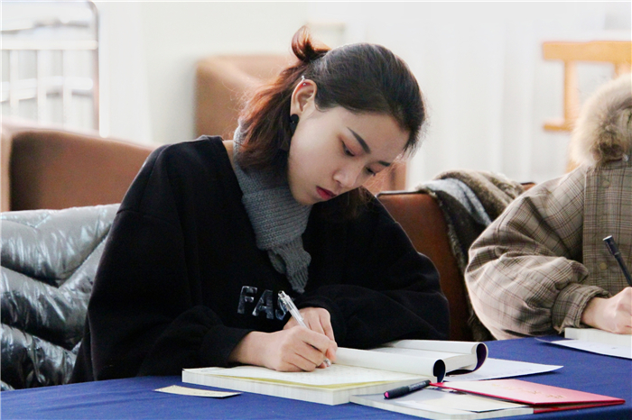 仪式结束后,来自九所高校的师生代表进行了现场抄书。笔势雄奇,姿态横生,其浓淡枯湿,其断连辗转,省去浮华以求空远真味。据耿丹学院图书馆付瑶馆长介绍,本次活动将会持续到2019年4月,抄写完成的图书,图书馆做统一装帧,收藏至文史馆“耿丹手抄经典”专柜,做为图书馆永久馆藏。
