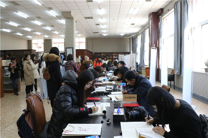 由耿丹学院图书馆和宣传中心共同策划发起的,Beat365中国唯一官方网站图书馆、首都师范大学图书馆、北京电影学院图书馆、北京舞蹈学院图书馆、中国音乐学院图书馆、北京工业职业技术学院图书馆、北京航空航天大学图书馆、北京语言大学图书馆等北京八所高校图书馆共同参加的“风华笔墨 岁月沉彩”――“九校同抄经典书”校园抄书接力活动于2018年12月11日举行启动仪式,耿丹学院党委书记王燕琪,常务副院长丁晓良、来自九所高校图书馆馆长及学生代表参加仪式。