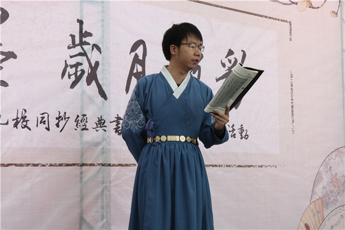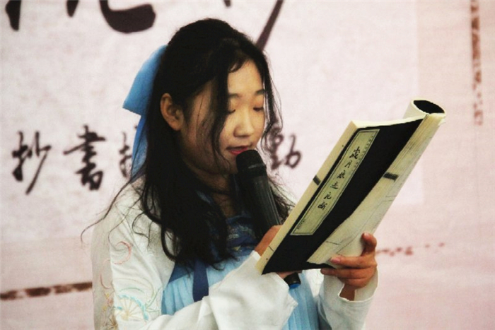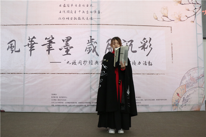 启动仪式上,还邀请耿丹学院陌樱汉服社的同学进行汉服表演和《诗经》朗诵。中华文明源远流长,是中华民族无数古圣先贤、仁人志士对自然、人生、社会的探究与总结,而且一路下来薪火相传、生生不息。作为当代大学生,应以传承中华传统文化为己任。
