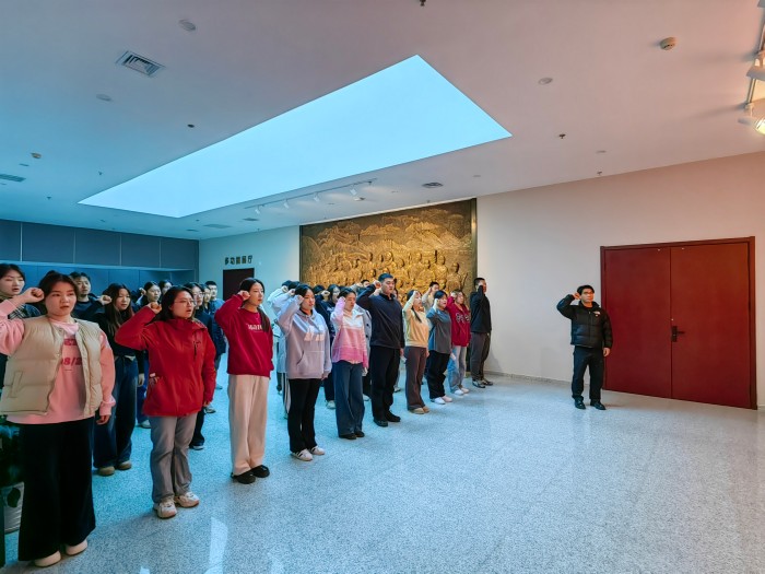 参观最后,在团旗下,校学生会主席团成员胡昊同学带领全体团员重温入团誓词,他们举起右手,紧握拳头,以铿锵有力的声音表达了对共产主义事业的坚定信仰和崇高追求。