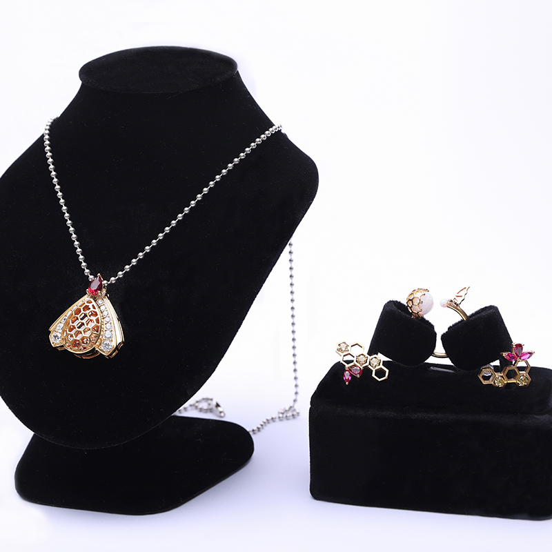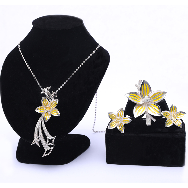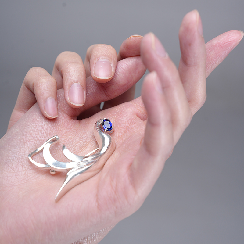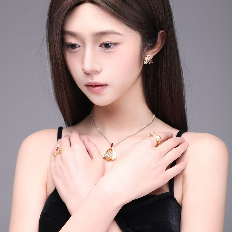 作品简介:本课题的“生命的能量”阐述自然界的三种生命形式,将蜜蜂、游隼、沙炽星融入首饰设计中,每一种生物都能在大自然中利用其本质特征去捕捉那些对其发展至关重要的能量信号。以动植物的优雅特征和身体构造为基础,将自然界中的形态与现代设计理念相结合,让首饰呈现出一种生动的画面感和强烈的动感。无论身处何种环境,都能像蜂群那样团结协作,如游隼一般勇往直前,在沙炽星象征的生命源泉之上,绽放出属于自己的璀璨光彩。本次课题最终呈现一共12件作品,分为三个子系列。《巢》以熊蜂、蜂巢为主要设计元素,运用珐琅工艺和宝石镶嵌,辅以暖黄色制作出。《速》以游隼俯冲捕食或飞行的姿态作为灵感来源进行动作提取设计。系列三《沙》,沙丘中生命力极强的沙炽星美丽且强韧。