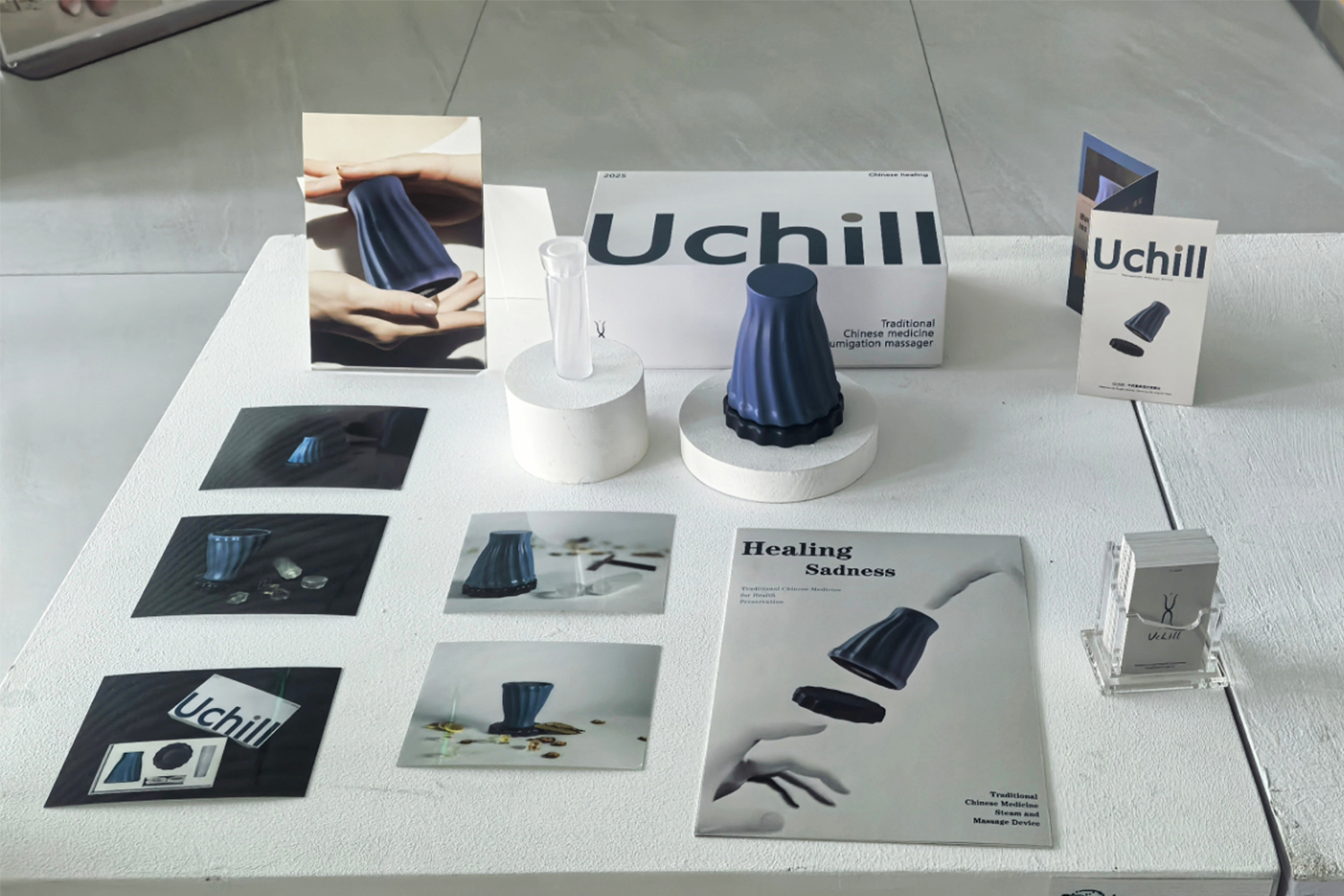 作品简介:这是一款将中国传统中药熏蒸养生理念结合在现代按摩仪上,可通过注入不同的中药液体来满足用户个性化使用体验的中药熏蒸理疗按摩仪设计,以中药养生为核心价值锚点,运用现代科技与创新设计理念,将传统中医药文化与现代生活方式深度融合。